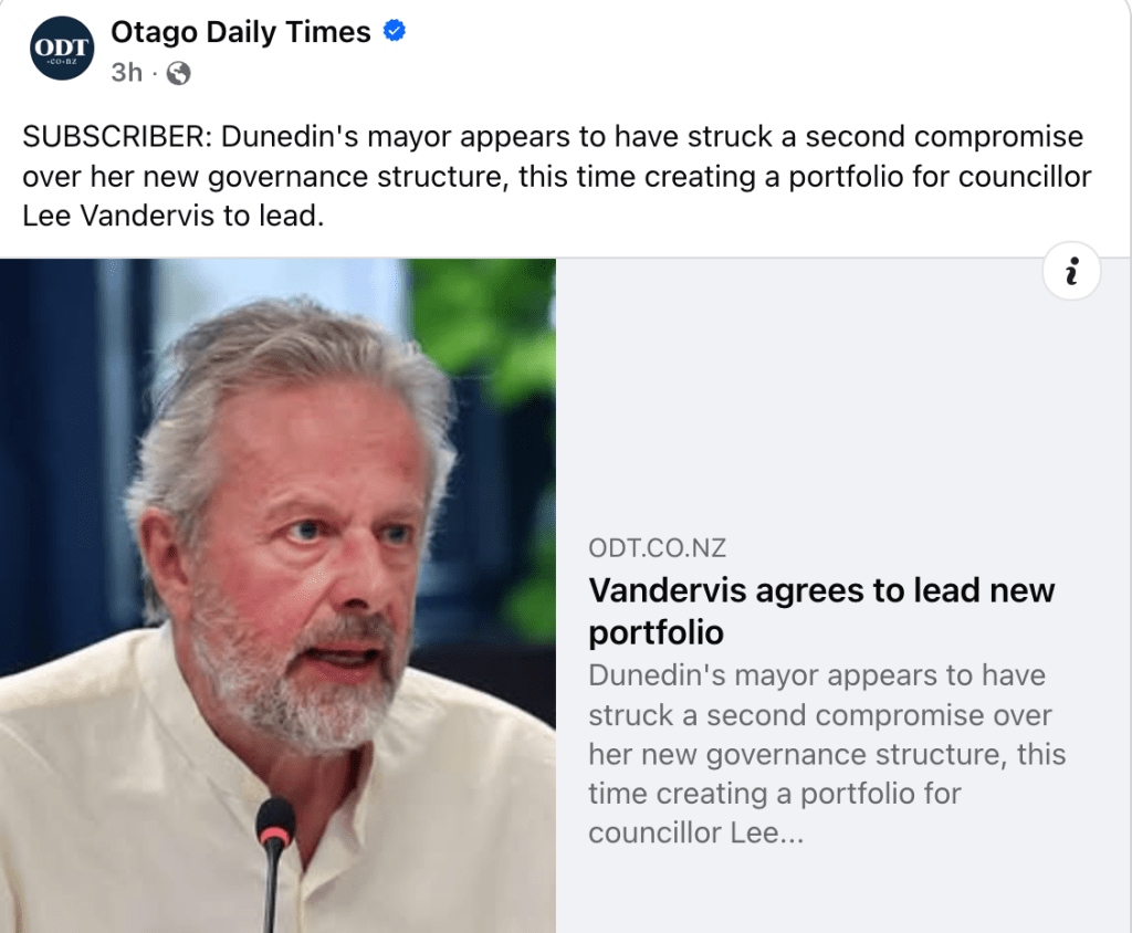 From: Sophie Barker <Sophie.Barker@dcc.govt.nz> Date: Friday, 21 November 2025 at 4:14 PM To: Lee Vandervis <lee@vandervision.co.nz> Subject: Council Roles