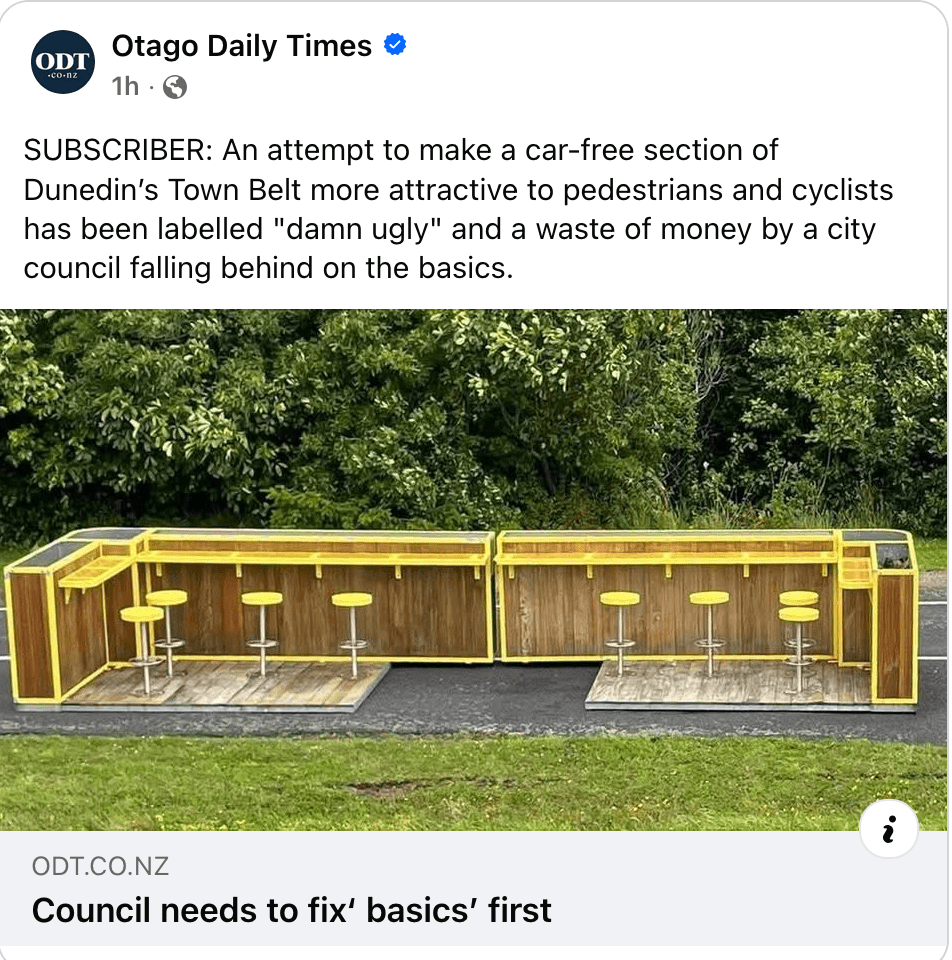 I feel for Dunedin, especially for people on lower and fixed incomes who will now continue to suffer both of our bloated bureaucracies, interest on DCC Billion-dollar debt, compromised Council companies with another Billion-dollar debt, and a Council with re-elected activists and political party puppets pushing Palestine and planet-saving instead of good local government for Dunedin. Good new Councillor blood will make a positive difference, but spendthrift Mayoral direction and control by bureaucracy make real change unlikely.