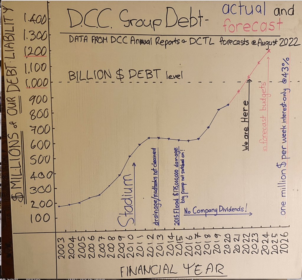 A largely left-leaning audience at Opoho Church last night were lapping up Mayor Hawkins’ claims to have been instrumental in getting our new $1.5 Billion Hospital centrally sited [sited on Dunedin’s most expensive not big enough swampy land without checking to see if could take the weight of a 12 story building or have underground carparking] but they were uninterested or uncomprehending of my summary of the unsustainable $100 million of new debt the Hawkins Council has added each year on top of unprecedented rates rises of 9.8% and 5.6%.