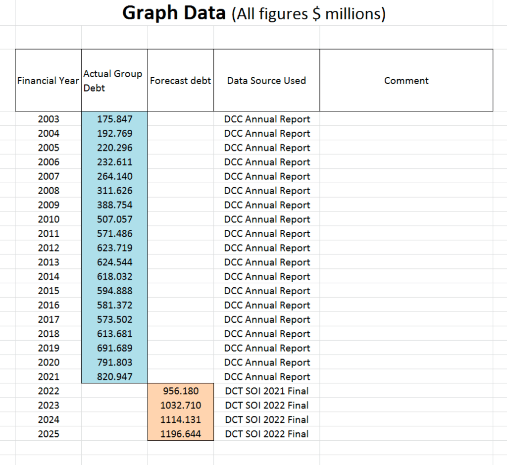 The ODT don’t want you to know that DCC Group Debt has gone up by $100 million every year under Hawkins and is planned to keep going!, with Dunedin citizens having to pay $1million per week in interest-only to overseas banks.