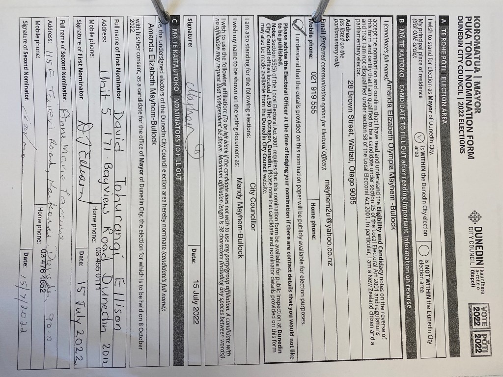 It turns out that this claimed little old lady was in fact an accomplice Mayoral nominator for Mayhem-Bullock, evidence for which I have made public on social media as below, without highlighting any part of the public Electoral document.