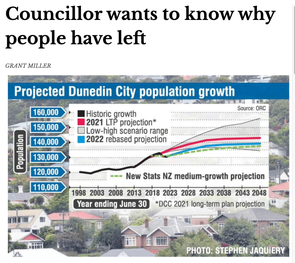 Against DCC modeled predictions, a net loss of 2,000 people voted with their feet to leave Dunedin for other parts of NZ last year, when the rest of NZ population is growing at 1%.
