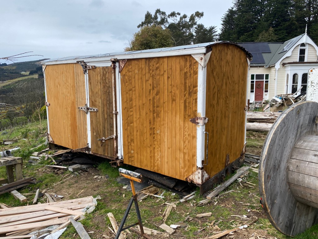 2 Responses to Before and after pics of our vintage Hillside-built cooler carriage restoration Christmas holiday project that we milled the macrocarpa for…