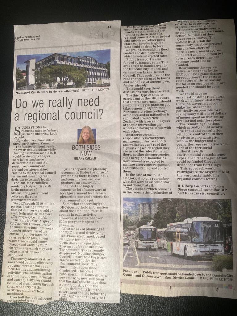 Is the ORC merely an attempt to meld Queenstown & Dunedin together. Queenstown is of course closer to Invercargill than Dunedin.