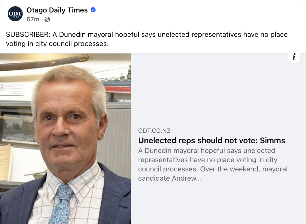 So true Lee, unelected reps should NOT have voting rights on council. As for the ODT reporter, she like many within the MSM are the very reason that the MSM is failing world wide.