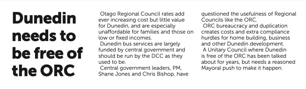 Getting Dunedin free of the Otago Regional Council can’t come soon enough, but needs a strong Mayoral push to make it happen.
