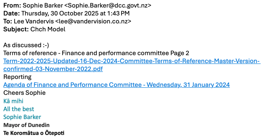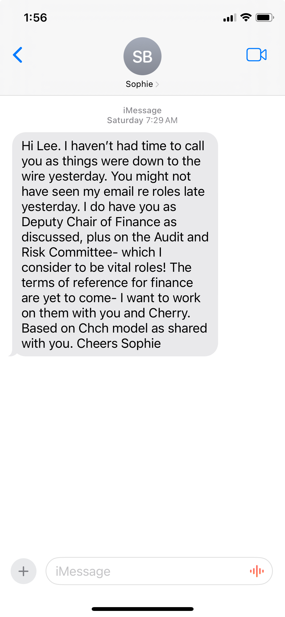 This was the text message – “Deputy Chair of Finance as discussed” is untrue.