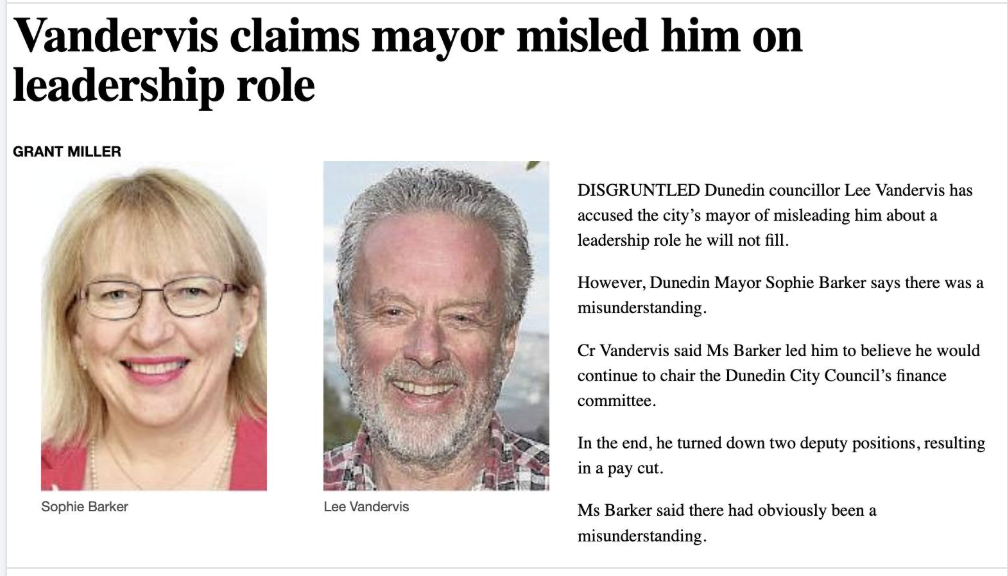 I was surprised after our friendly discussions about changes to the Finance and Council-controlled Organisations Committee I had chaired for the past three years when she suddenly demoted me from Chair of Finance in the weekend with a text.