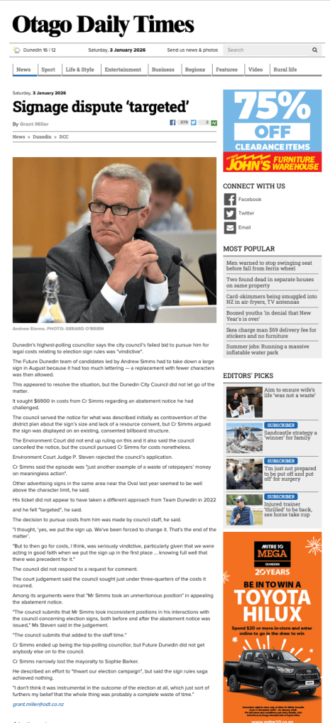 I believe the actions of DCC CEO Bidrose in the run-up to the 2019 election changed the Mayoralty result to the detriment of Dunedin.