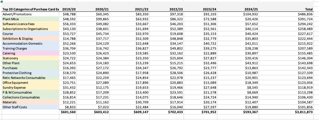 If “Gifts Prizes and Koha” can be $12,333 in 2019/20, but more than double that in several other years, this raises a question of what value is achieved by this spending.