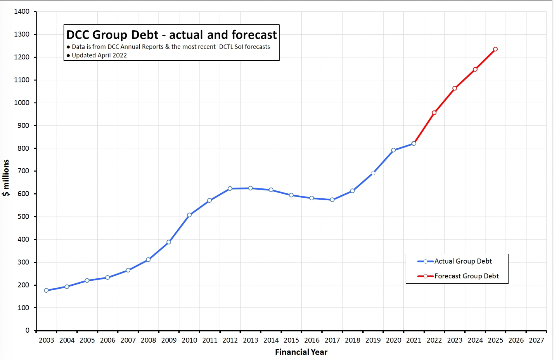 Every Annual Plan for years and at other opportunities I have debated against increasing DCC debt because long low interest rates could only go one way. DCC Group Debt [Council and Council Companies] is out of control, increasing more than $100 million every year.